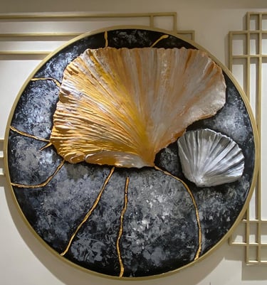 Acrylic & Wall Putty Art – Textured, 3D designs using putty, metallic leaf, and mixed mediums for striking wall finishes.